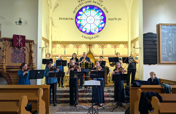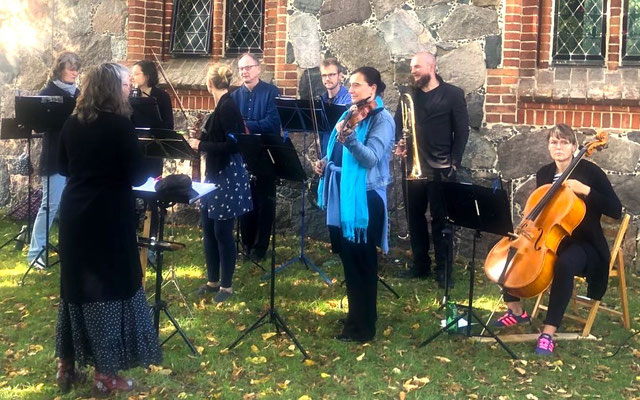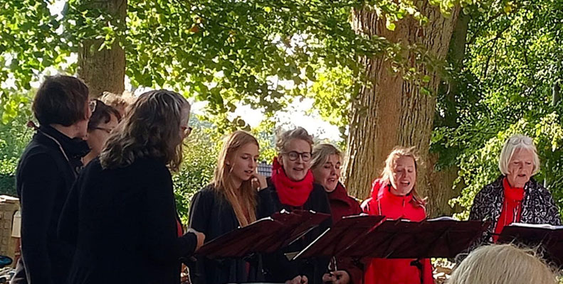 Aufgrund der diesjährigen covid-19 -Situation war ein Proben nach dem lockdown nur in einem sehr kleinen Rahmen möglich. Um so schöner war es, sich nach der Lockerung zu einer zwanglosen, lustigen Probe (bei mehr als 30°C) unter den Bäumen am Teich in Neuhof zu treffen und endlich wieder gemeinsam Musik zu machen. Nicht Alle konnten dabei sein, aber vielleicht das nächste Mal.