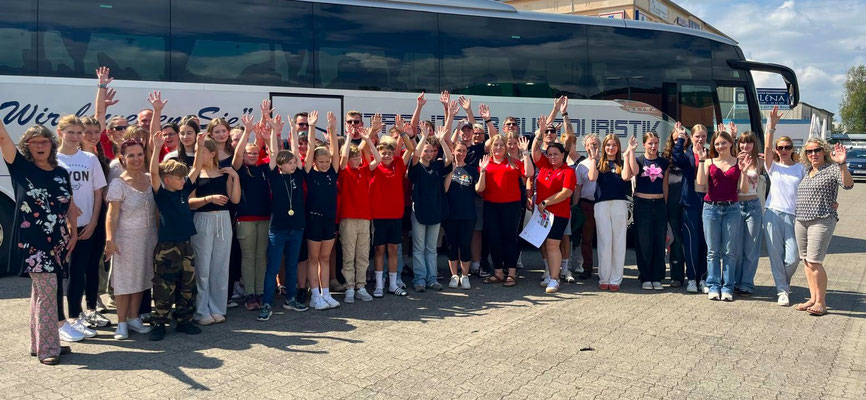 . . . gemeinsam mit dem Fanfarenzug und Tanzgruppen des Tanzhauses der Deutschen Tanzkompanie Neustrelitz - Fotos: Abfahrt und Rathaus Szczecinek